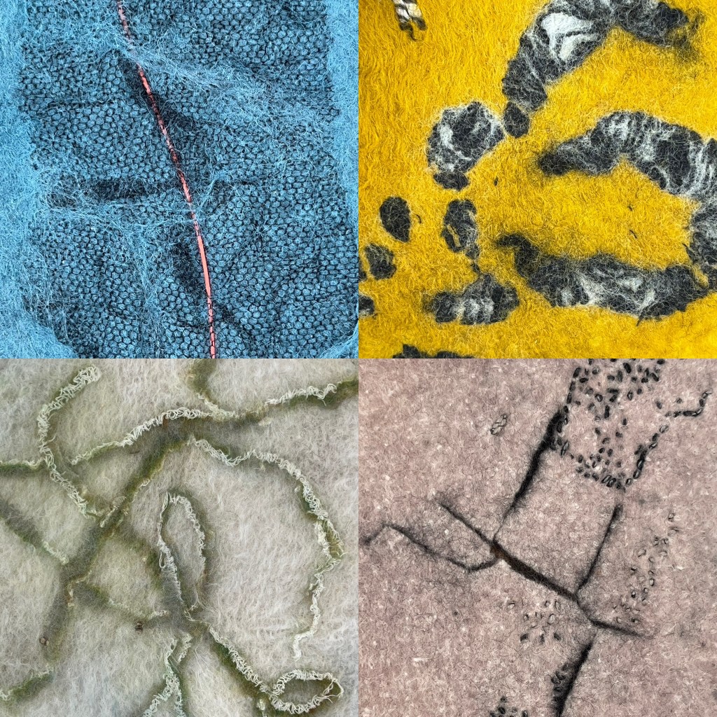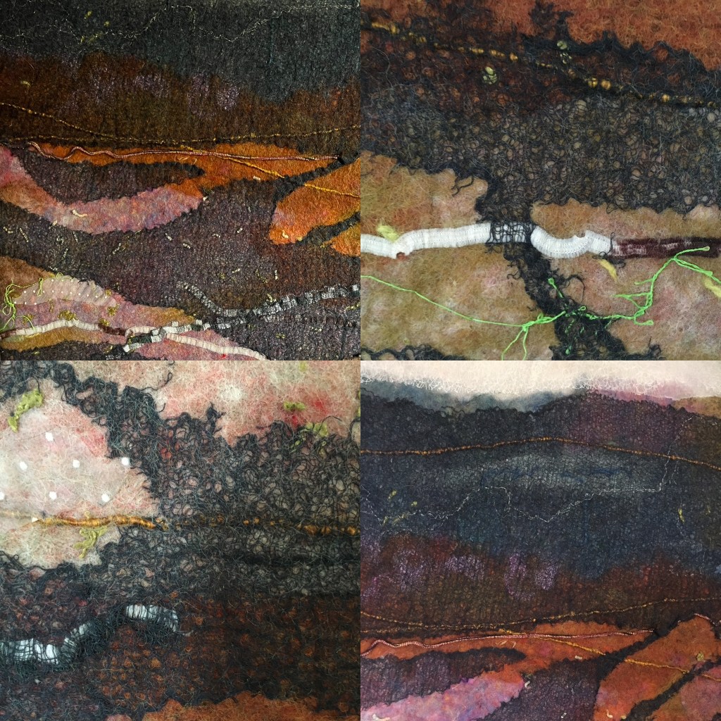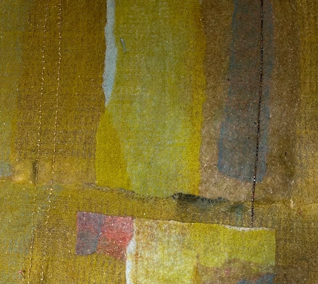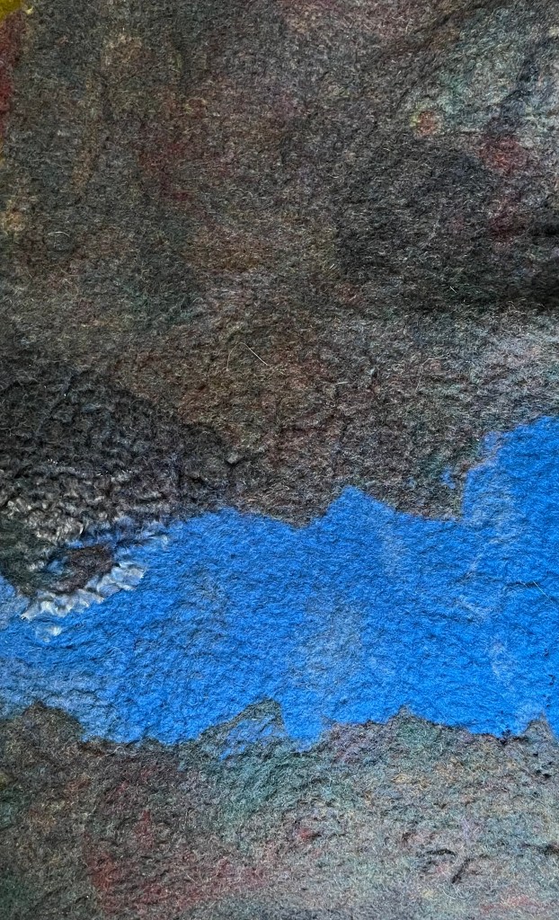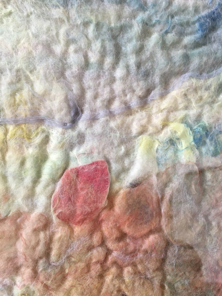 ‘Harbour’ – abstract imagery formed by wool fibre, fabric & threads.